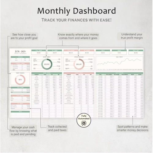 Streamline your small business finances with this Easy Bookkeeping Spreadsheet. This editable Google Sheets template helps you track income, expenses, and profits with ease. Perfect for small businesses, freelancers, or anyone needing simple accounting and budgeting solutions. Keep your books organized and stay on top of taxes, monthly, and annual finances.