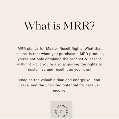 PLUS - every single digital product comes with Master Resell Rights (MRR) & Private Label Rights (PLR) - which grants you the exclusive rights to resell to others (if you wish) keeping 100% of the profits for yourself!