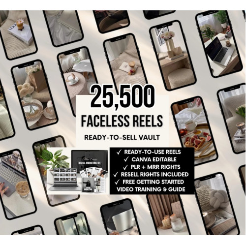 Tags: Buy, 25, 500, Faceless, Reels, Bundle, PLR, MRR, Rights, Ready-To-Resell, Digital, Product, Vault, Private, Label, Rights, Canva, Editable, Faceless, Video, discount, price.