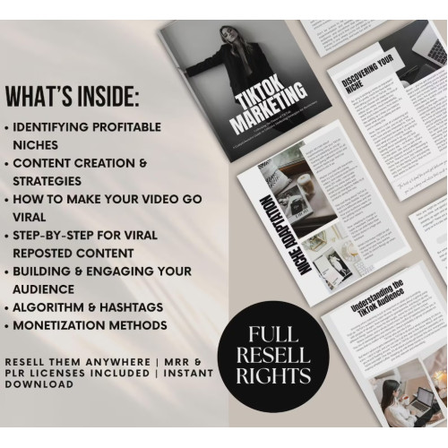 A complete, ready-to-sell digital product designed to help beginners understand how to make money on TikTok, while giving you a product you can sell for 100% profit.