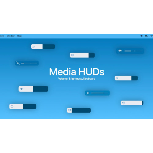 An audio, brightness and keyboard brightness HUD which replace the native HUDs.