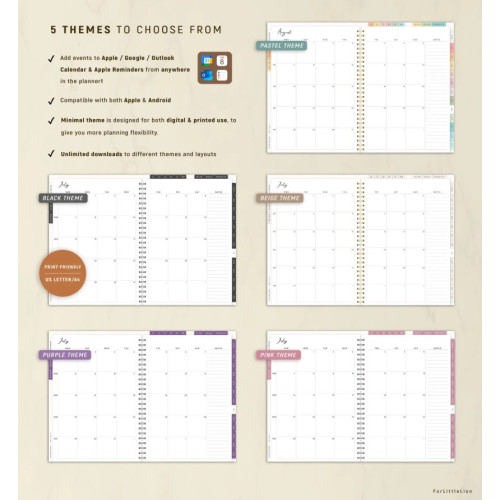 • 5 themes - Pastel, Black, Beige, Purple & Pink