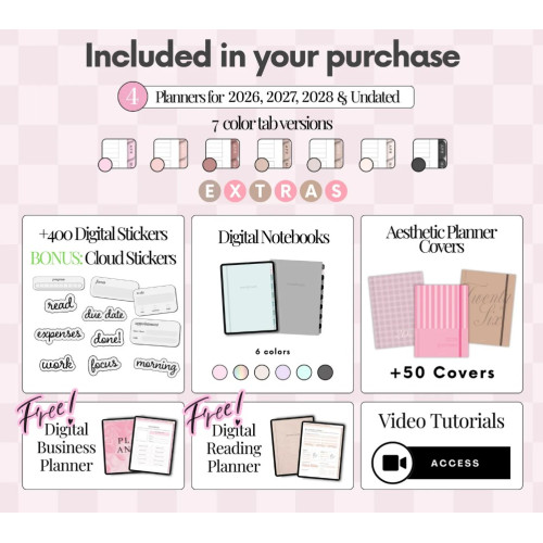 • Your purchase includes 2026, 2027, 2028 and Undated Digital Planner
