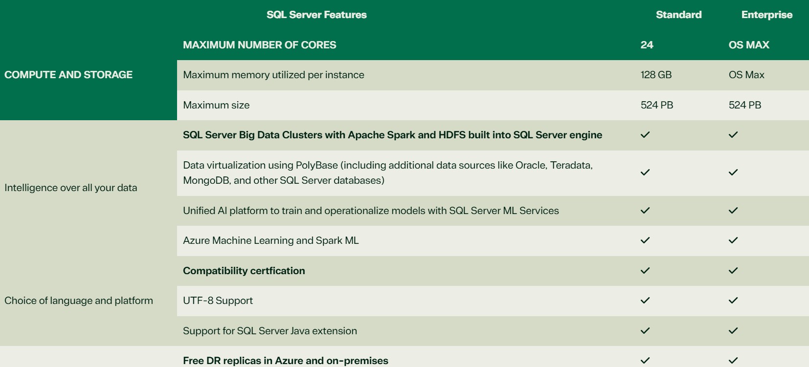 SQL Server 2025 Standard VS Enterprise