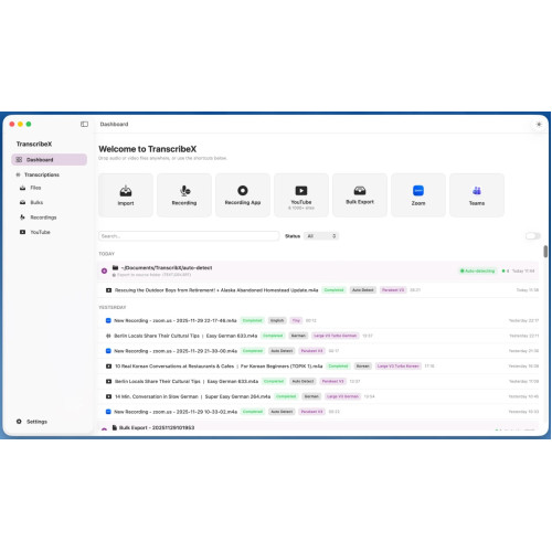 TranscribeX is a powerful macOS app that converts your audio and video into accurate transcripts, translates them into over 100 languages, and helps you summarize or edit with advanced AI tools. Built with OpenAI Whisper, distilled Whisper V3/V3.5, and NVIDIA Parakeet models, TranscribeX delivers exceptional accuracy, blazing speed, and—most importantly—privacy, since all transcription and translation can run locally on your Mac without sending data to the cloud.