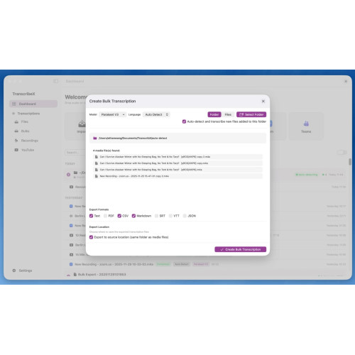 • Export to multiple formats including TXT, PDF, SRT, VTT, and more professional export options