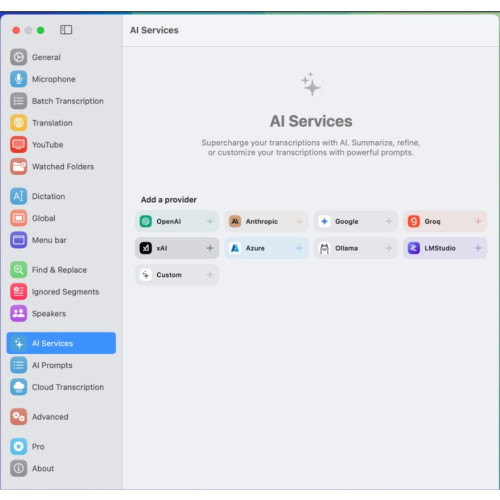 Support for OpenAI (ChatGPT), Anthropic (Claude), Groq, Ollama, XAi, Deepseek, Custom OpenAI API endpoints and Azure AI models for easy prompting