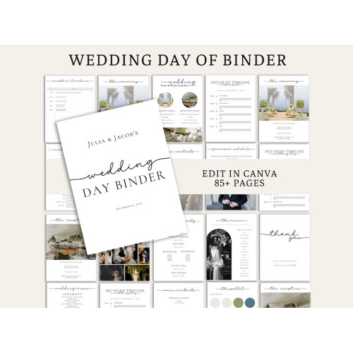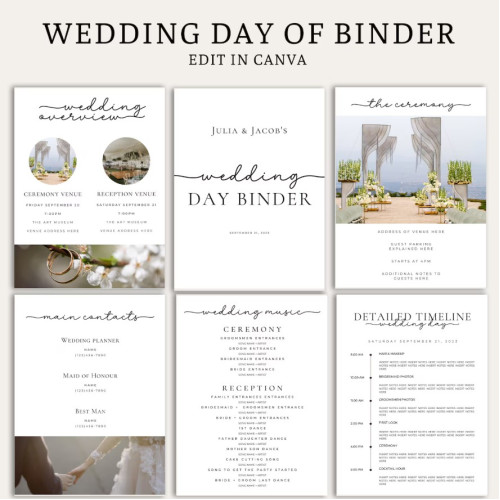 Looking for a stylish and customizable wedding day binder template that you can edit on your computer or mobile device? Look no further than our digital wedding day-of binder template.
